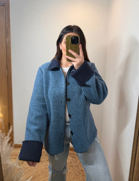 Navy Reversible Fleece Vintage Jacket (Medium)