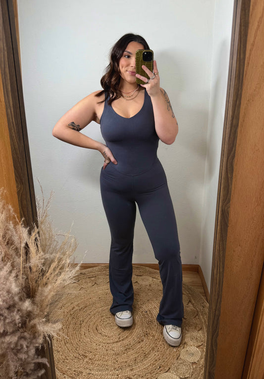 Comfort Awaits Flared Jumpsuit : Charcoal