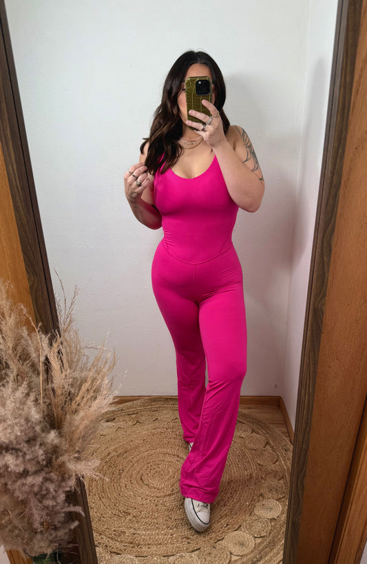 Comfort Awaits Flared Jumpsuit : Barbie Pink