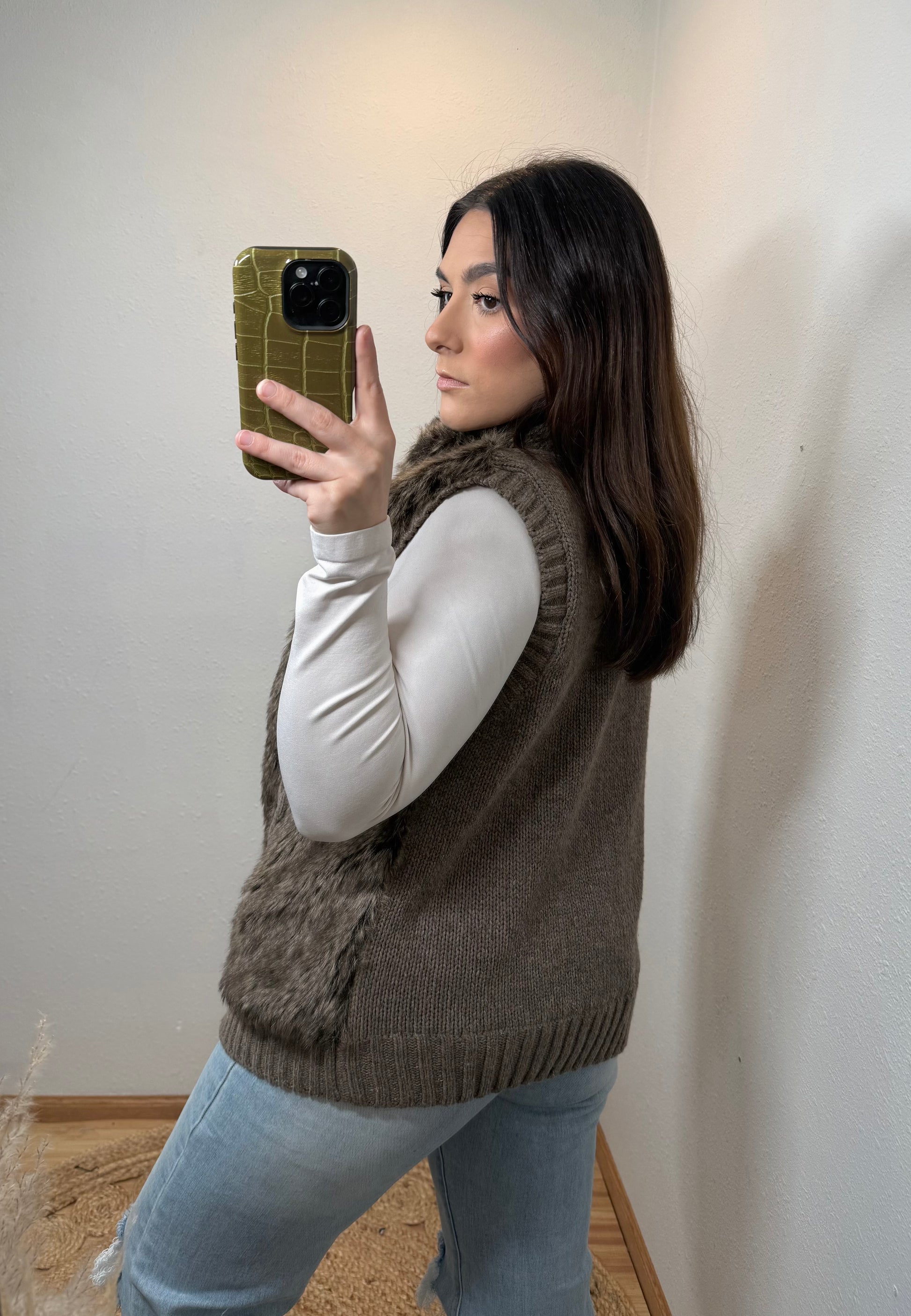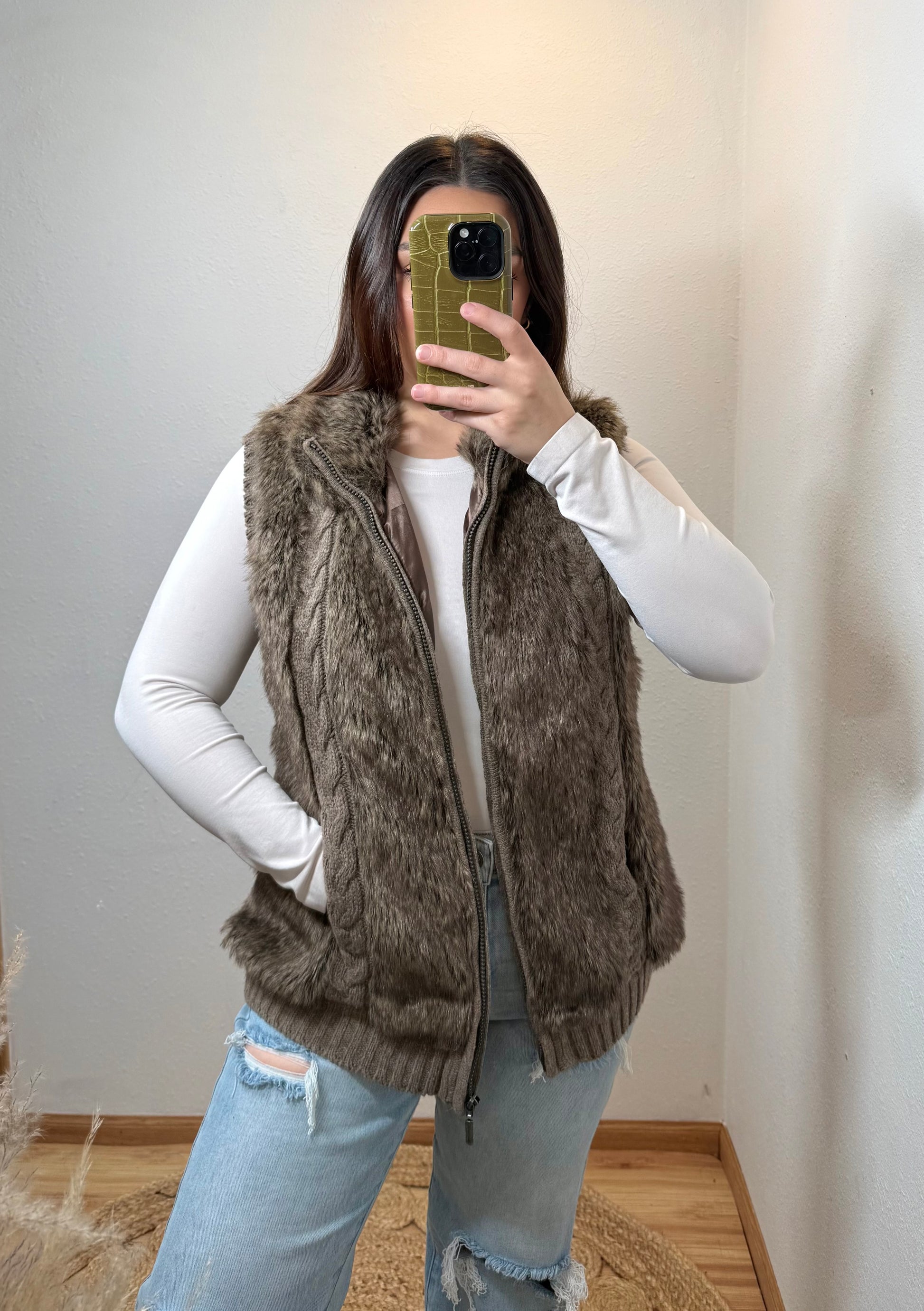 Cableknit Faux Fur Vest (XL)