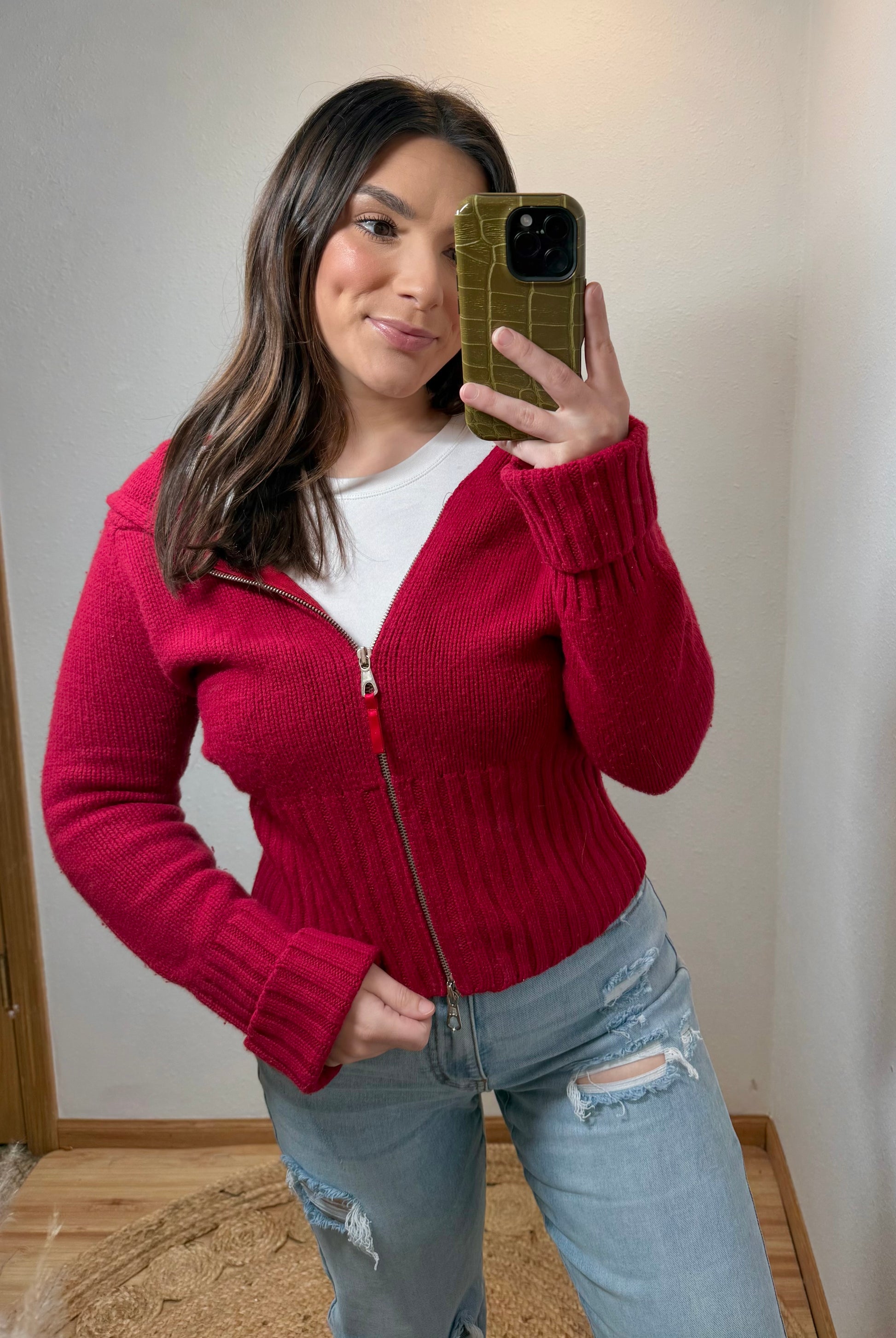 Express Y2K Double Zip Knit Jacket (Large)