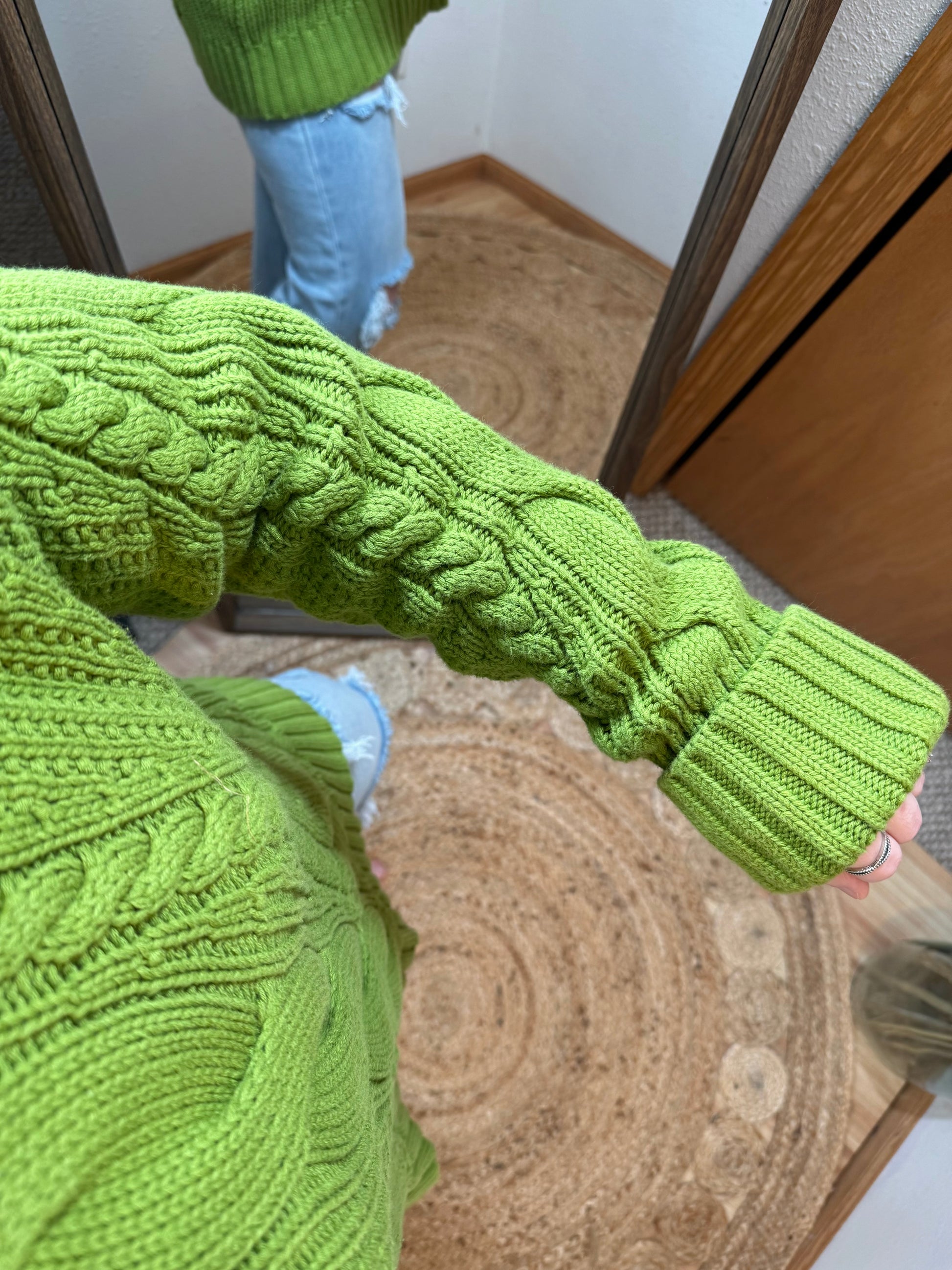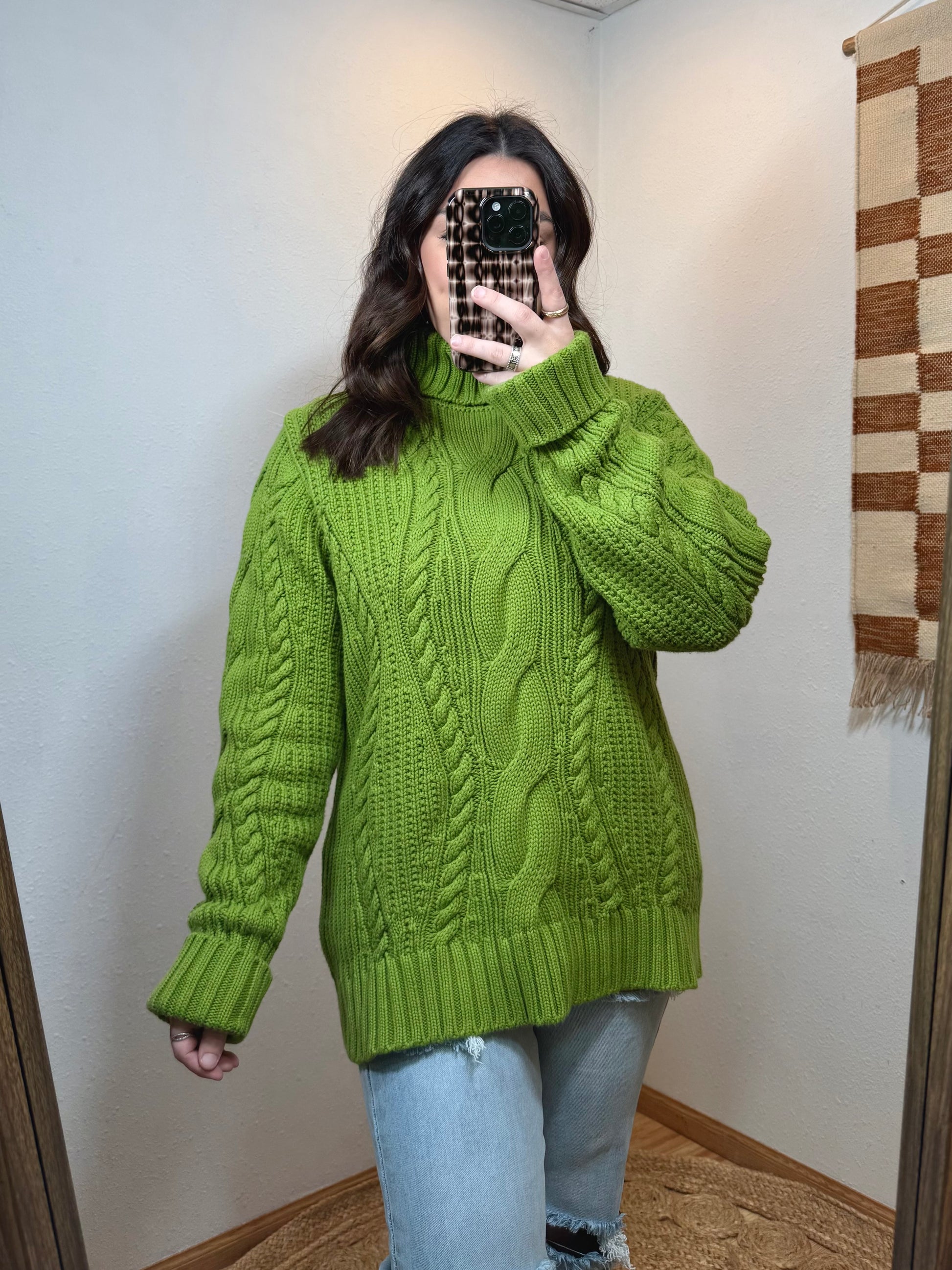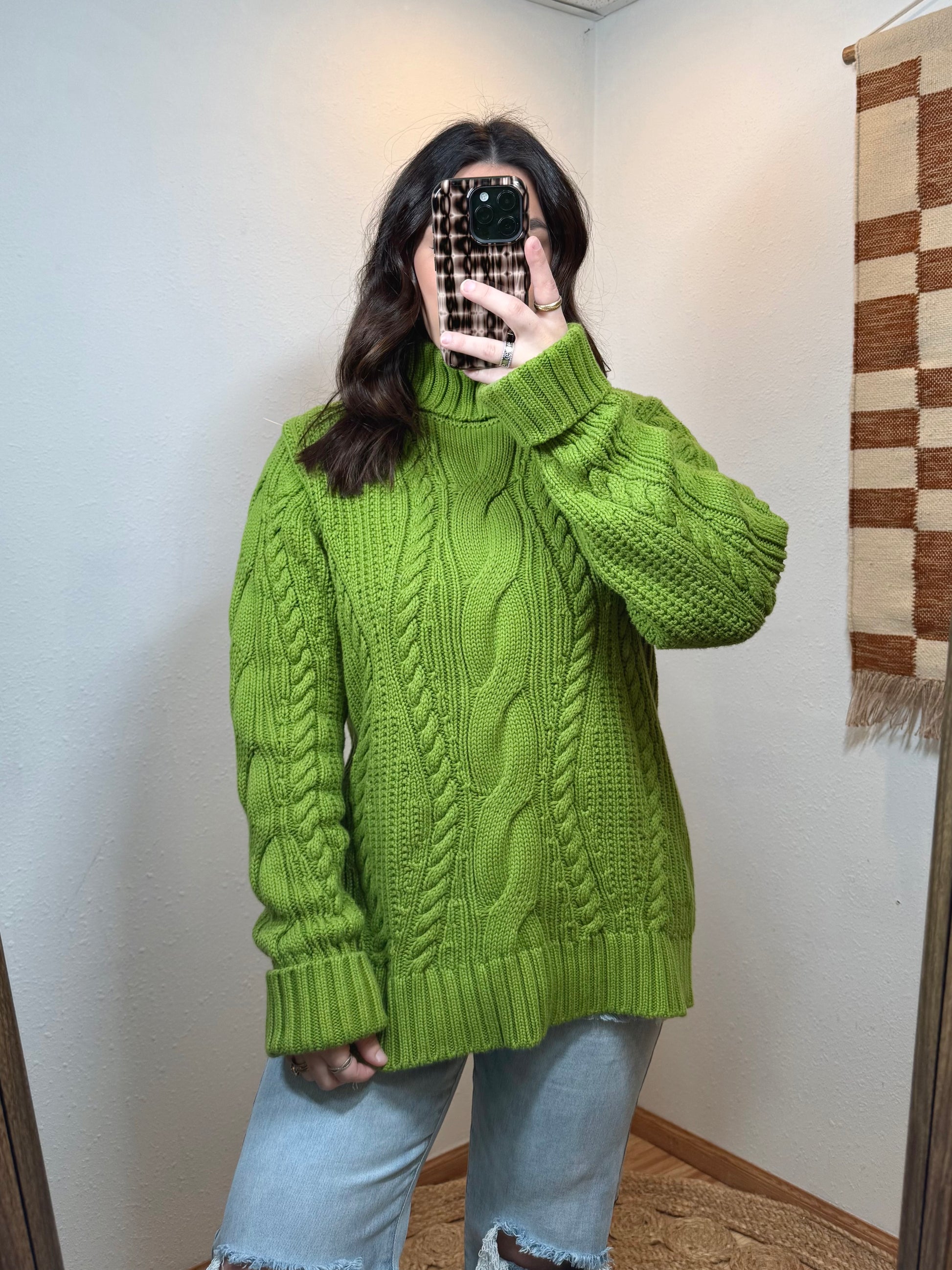 Grinchy Green Cableknit Turtleneck Sweater - XL