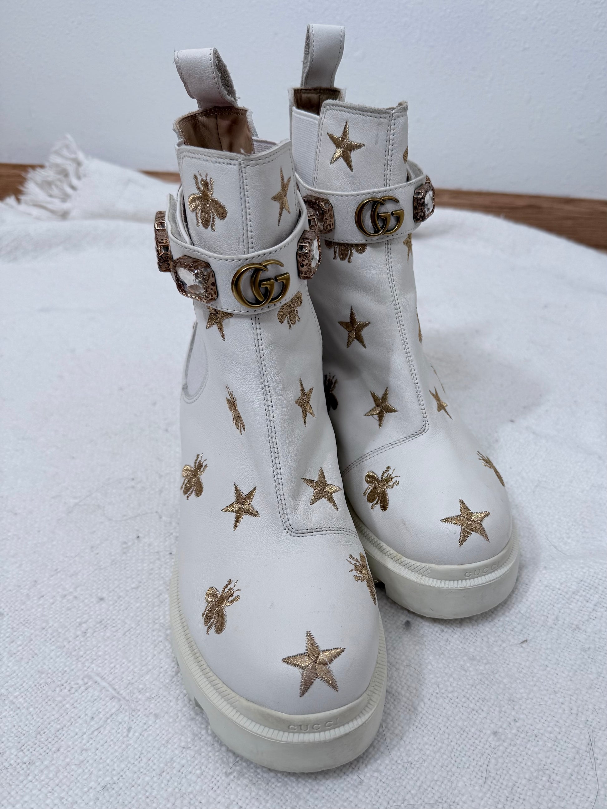 Ivory GG Embroidered Booties - 7/7.5