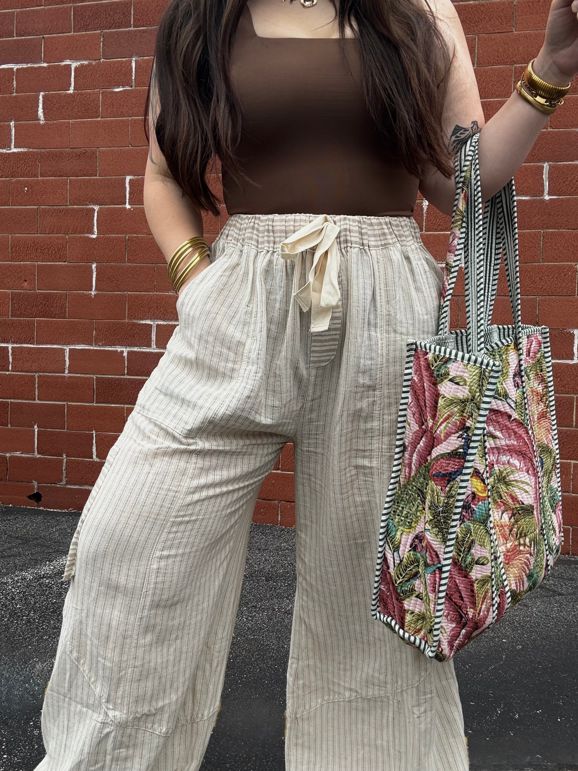 Neutral Striped Linen Pants